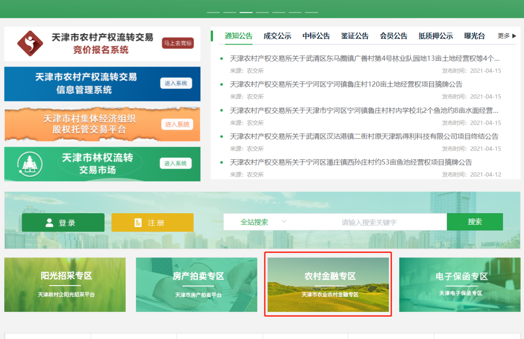申请人也可通过手机登录天津农村产权交易所微信公众号“信息查询”→“农村金融”进行在线申请。