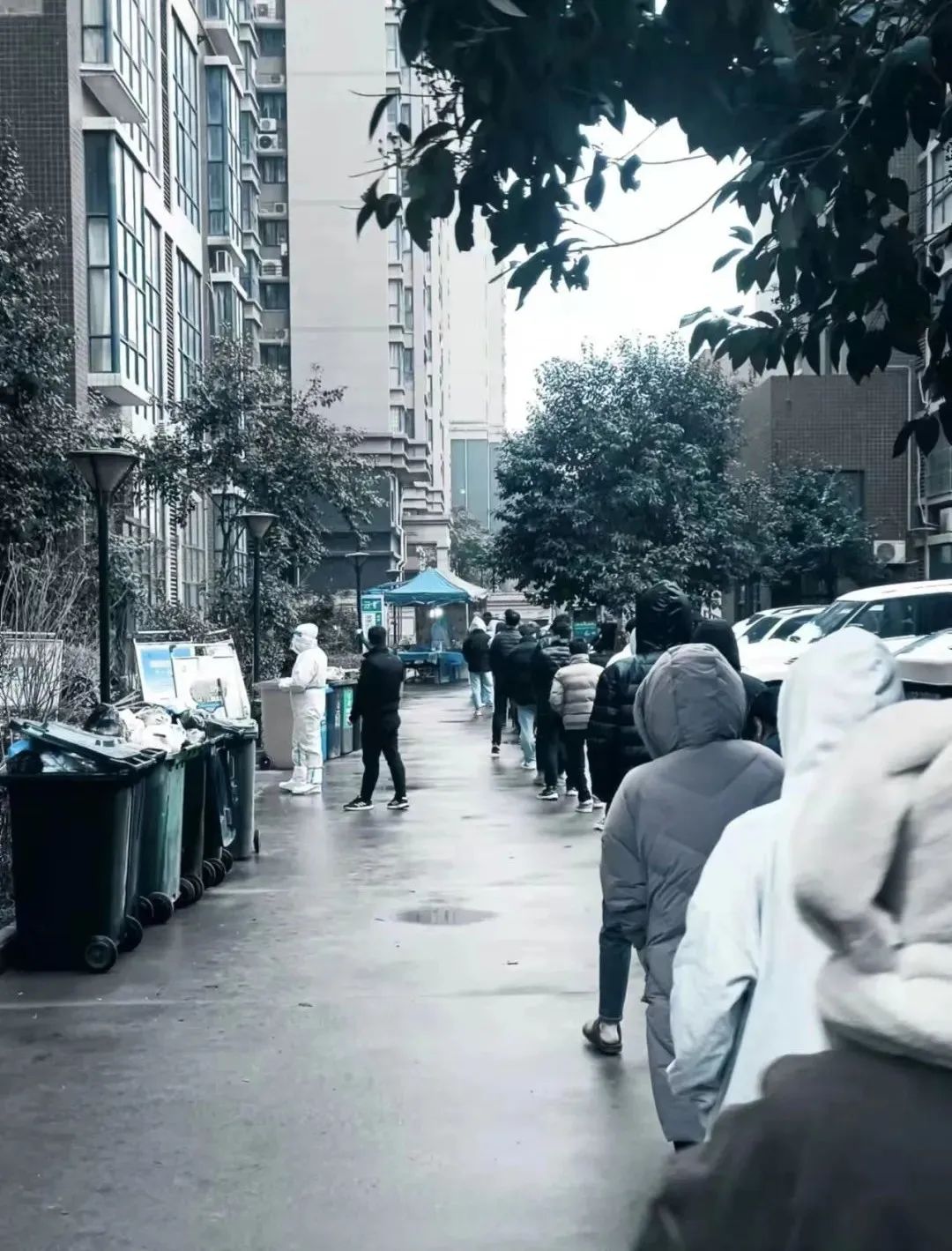 冬天小区全员核酸的时候。