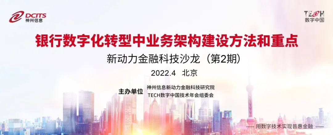 由神州信息新动力金融科技研究院和TECH数字中国技术年会组委会联合举办的第二期新动力金融科技沙龙线上召开,邀请金融业务、研究领域、咨询机构等专家们就“银行数字化转型中业务架构建设方法和重点“主题,以及如何通过业务架构设计解决银行数字化转型中普遍存在的信息孤岛、缺乏技术合力、业务技术链接不紧密等作主旨分享和互动研讨。