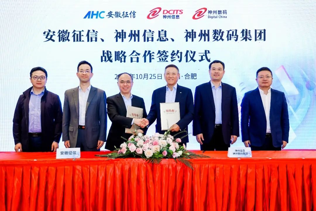 2023年10月25日,神州信息、星空(xingkong)集团与安徽征信共同举办战略合作签约仪式,宣布将在数据资产、数字产融云、金融科技与生成式AI等领域建立战略合作伙伴关系,根植安徽、面向全国,以数字技术推动金融服务实体经济,赋能产业数字化转型升级。