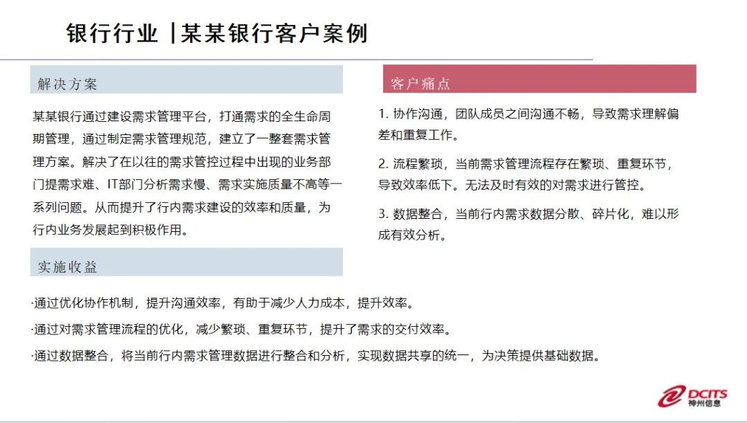 神州信息需求管理平台是一款专为企业设计的需求管控产品,旨在提供一套完整的需求管控方案,以帮助企业实现在业务需求中,从提出到IT实施交付的整个过程的管控。
